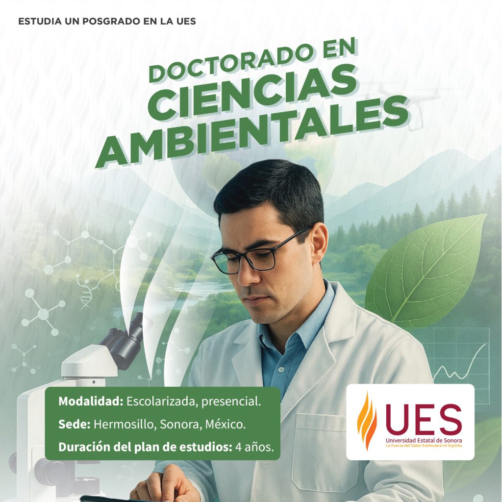 Entre la oferta destaca el Doctorado en Ciencias Ambientales, impartido en la UES Hermosillo, dirigido a egresados de maestría afín con capacidad de análisis, manejo de TICs, dominio del inglés e interés en investigación multidisciplinaria. Asimismo, la Maestría en Ciencias Ambientales, también en UES Hermosillo, está orientada a licenciados con habilidades para integrar conocimientos científicos y tecnológicos enfocados en el manejo sostenible de recursos naturales.