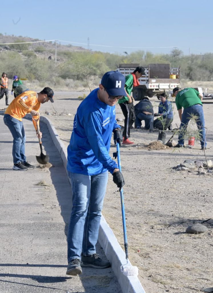 Hermosillo, Sonora, 7 de marzo, 2026.- Más de 200 voluntarios participaron en una jornada masiva de rehabilitación ambiental realizada en el Ecoparque, al poniente de Hermosillo, donde llevaron a cabo labores de limpieza, reforestación con 250 ejemplares, riego y pintura.
