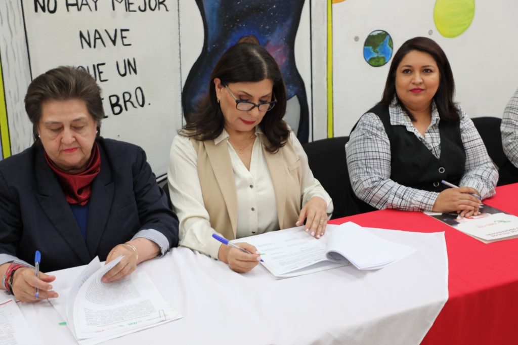 La directora general de Cecyte Sonora, Blanca Aurelia Valenzuela, firmó el documento con Margarita Vélez de la Rocha, directora general del Itesca; Aline A. Jáuregui, directora general de la Universidad Vizcaya de las Américas, campus Obregón; y Bianca Alejandrina Barros Martínez, rectora de la Escuela Iberoamericana de Ciencias de la Salud.