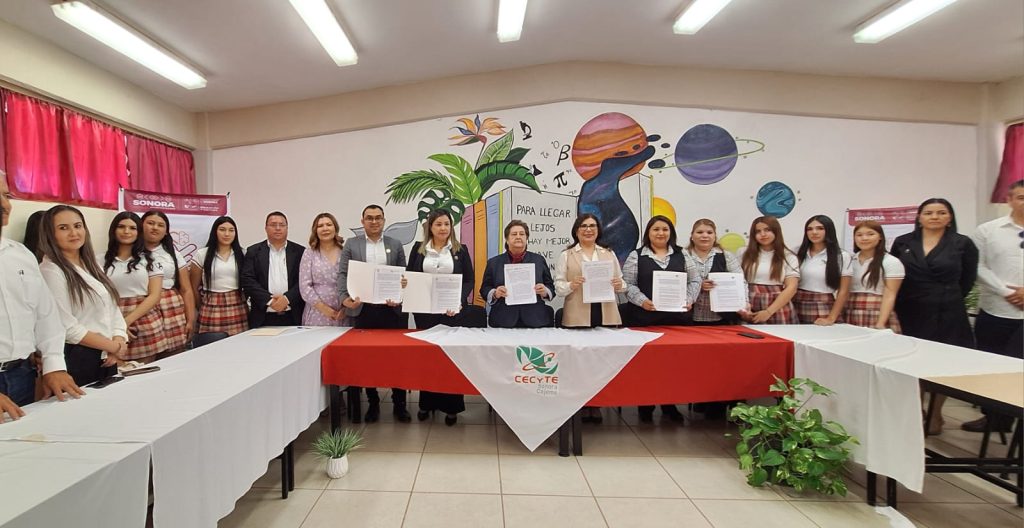 A través del Colegio de Estudios Científicos y Tecnológicos del Estado de Sonora (Cecyte), se formalizó un convenio de colaboración con el Instituto Tecnológico Superior de Cajeme (Itesca), la Universidad Vizcaya de las Américas y la Escuela Iberoamericana de Ciencias de la Salud para consolidar el modelo de Educación Dual en beneficio de estudiantes de la región Yaqui y Mayo.